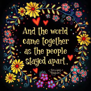 Earth is ever the planet of dichotomies and paradox. The ironical dichotomy here is that response to the pandemic is requiring us to separate ourselves from others aka “social distancing” and at the same time is bringing us into the awareness that “we are all in this together.” In the external material world we are working through a seeming conflict between the fact that we are all of one spirit and at the same time we each have a physical body that separates us from all other spirit. As embodied spirits evolve, we come to realize that these are not incompatible truths for the All-That-Is. Image by Jennifer Wagner is used in accordance with Fair Use principals.
