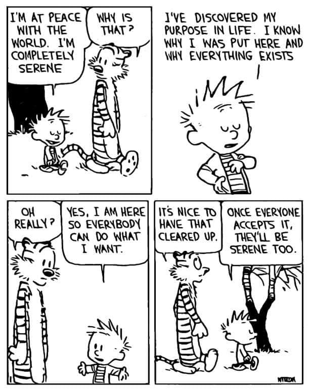 Most of us have so much healing to do after lifetimes of traumatic events and unresolved karma, that we do not even recognize when certain aspects of our energy system is still trying to control others. Calvin and Hobbes cartoon by Bill Watterson used in conjunction with Fair Use Principals.