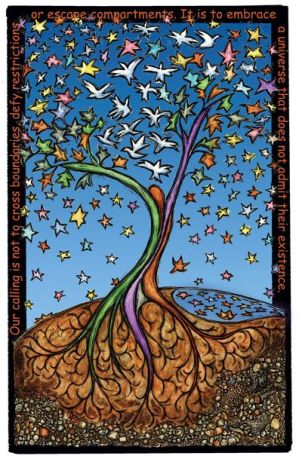 One critical component of the world-wide growth period that is going on right now is in regards to action versus contemplation. Many well-intentioned people have been sorely out of balance with this dichotomy. Effectively being spiritual in a material world in the present time frame requires both body and mind. Action without direction from the indwelling divine is busy work. Focusing one’s mental energy on spiritual goals is very important but not sufficient. We are being called to act in conjunction with and at the behest of Mother Earth and our fellow inhabitants. Image by Brian Andreas used in accordance with Fair Use principals.