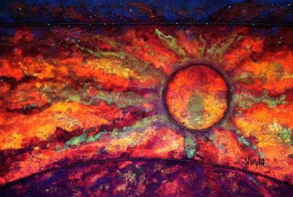 There is no part of the planet, no underground bunker or gated community that will protect human animals from the effects of climate change, “Warming” by Shayla Maddox. Art used in accordance with Fair Use Principles.